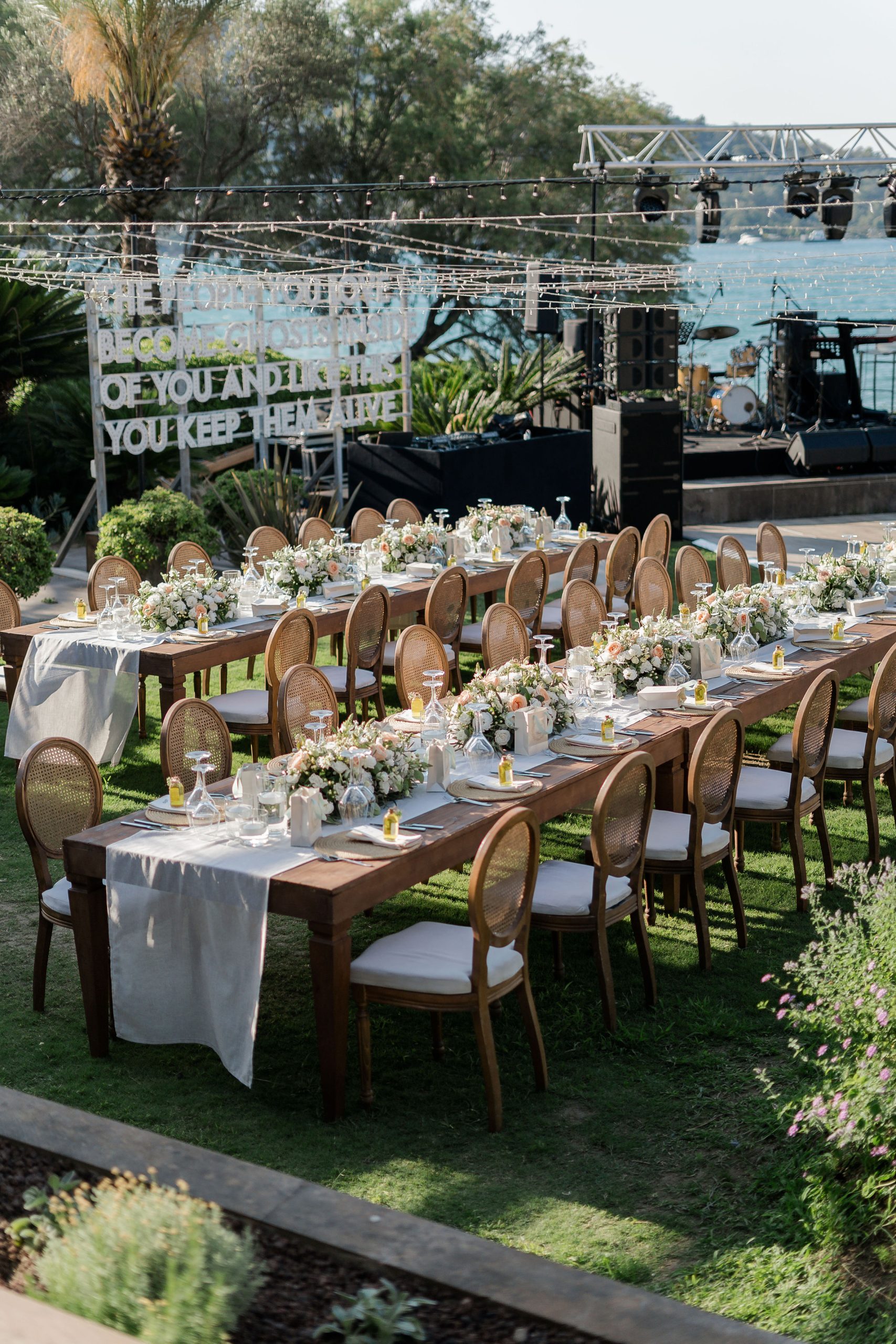 Burcu ve Umut’un Casa Dell’arte’de gerçekleşen zarif düğününde modern sanat eserlerinin enerjisini romantik dekorla birleştirdik. Denizin eşlik ettiği kusursuz bir yaz düğünü…
